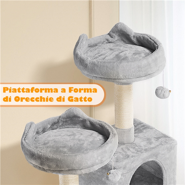 - Design multi-livello – Due piattaforme panoramiche permettono al vostro gatto di osservare l'ambiente circostante da diverse altezze