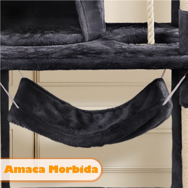Questo albero per gatti unisce funzionalità ed estetica, integrandosi armoniosamente in qualsiasi ambiente domestico. Regalate al vostro compagno felino uno spazio tutto suo dove arrampicarsi, giocare, riposare e affilare le unghie in totale sicurezza.